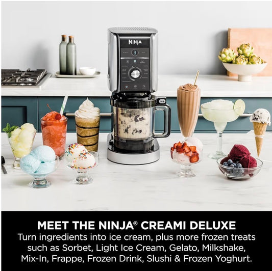 CREAMi Deluxe Ice Cream Maker & Frozen Dessert Maker with 3 Tubs, 10 Functions, Makes Ice Cream, Gelato, Sorbet, Frozen Yoghurt, Milkshakes, Slushi & More, 2-in-1 Flavour Option, Silver, NC501UK