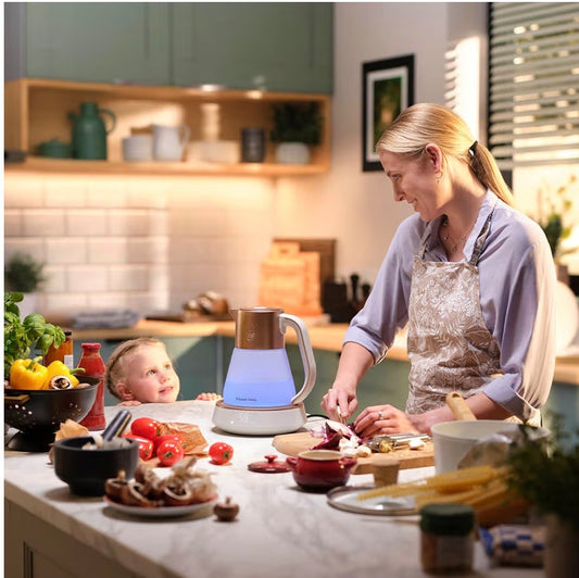Russell Hobbs Calm Kettle (1.7L, AI-designed, Variable temperature 40-100°C, Digital display, Soothing sounds, 360° base, Frosted glass, Copper accents, Quiet boil technology, 3000W) 27450