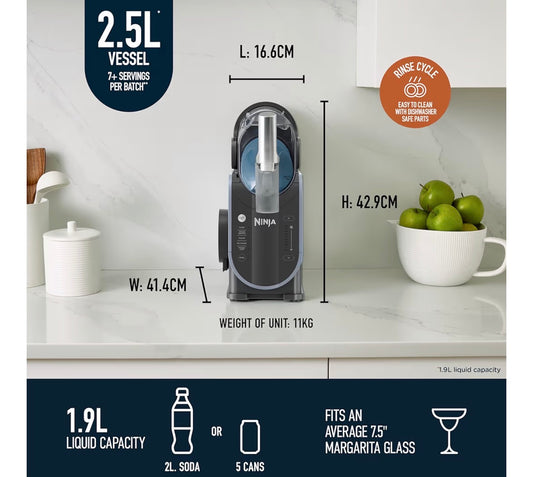 SLUSHi Frozen Drinks Maker, Create Slush, Frozen Cocktails, Frappé, Milkshakes & Frozen Juice, No Ice or Preperation Needed, WhisperChill Technology, 1.9l Capacity, Blue & Grey FS301UK