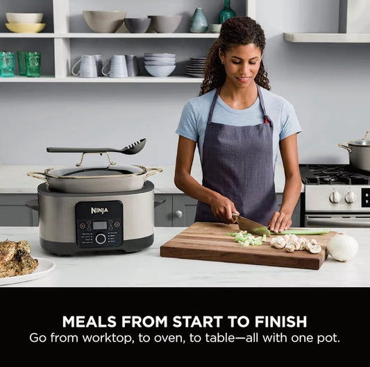 Ninja Foodi PossibleCooker, 8-in-1 Slow Cooker with Removable Non-Stick Pot, Steaming Rack, Integrated Spoon & Glass Lid, Slow Cook, Sear, Braise, Steam & more, 8L, Stone Gold, MC1001UKSTGD