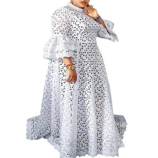 African Hollow Out Maxi Dress – 2025 Elegant Muslim Kaftan Abaya Robe
