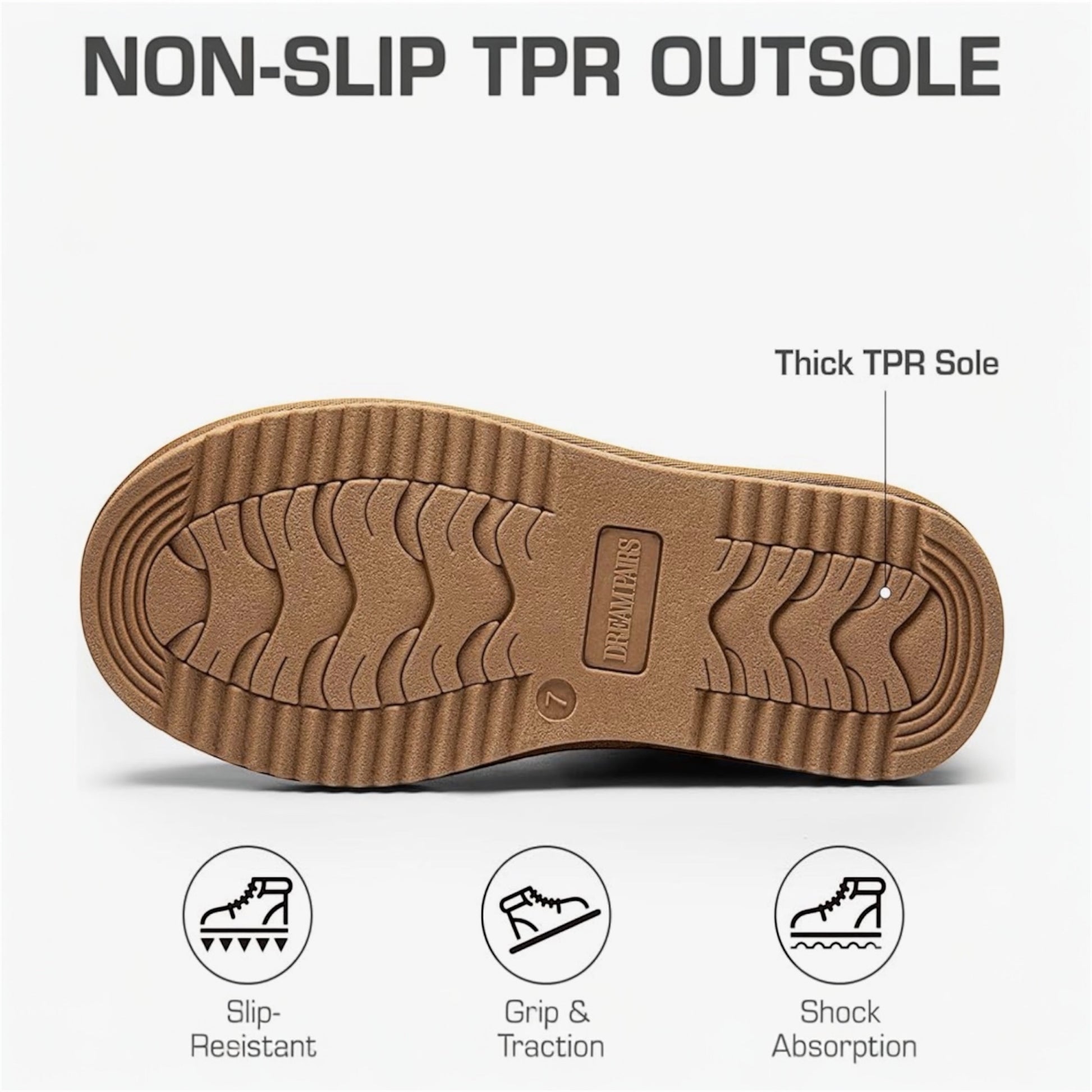 - Grippy Outsole: With a tread pattern on the outsole these cozy snow boots provide stability and traction when walking on slippery surfaces.