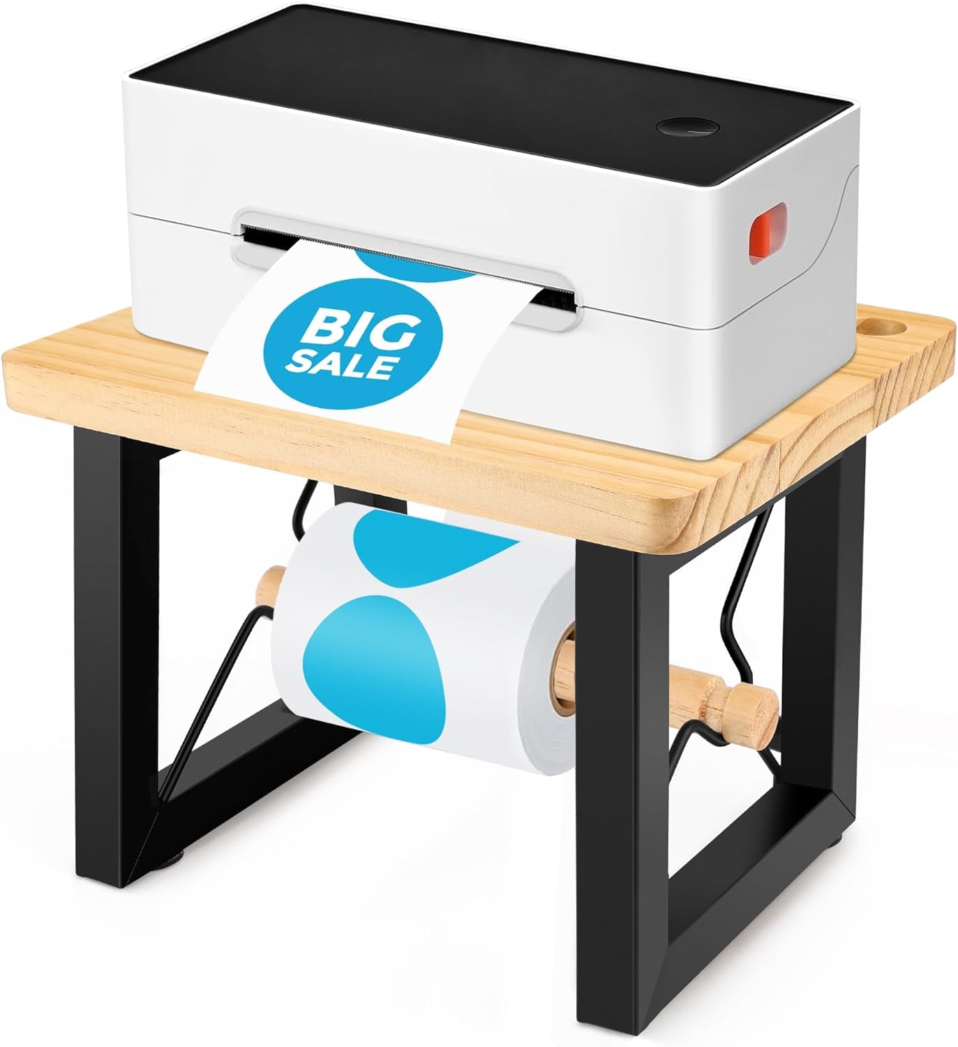 - 2-in-1 Storage Solution: Our thermal label roll holder keeps your thermal printer and label rolls neatly organized in one place. Features a wooden rod for label rolls and cable management holes to tidy power cords, making labeling tasks smoother and more efficient.