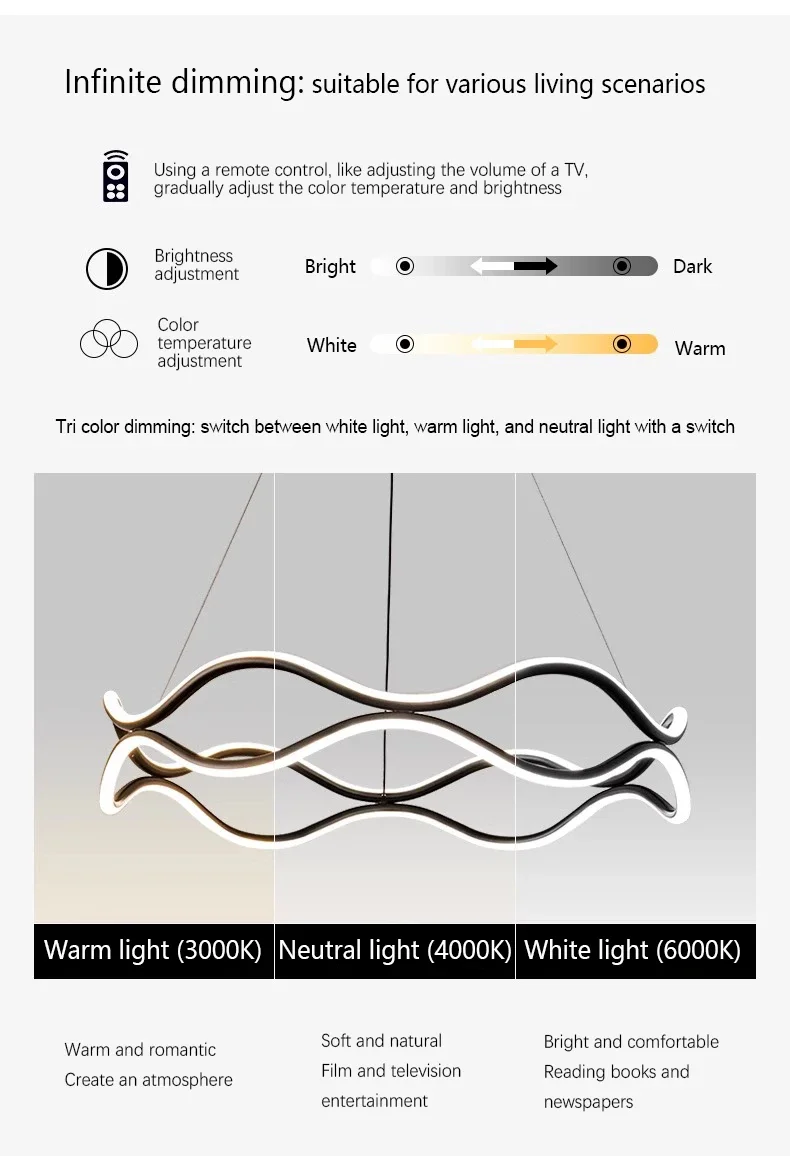 Modern LED Ceiling Chandelier – Remote Dimming Pendant Light