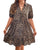 Plus Size Leopard Print Smock Dress with Puff Sleeves and Ruffled Hem
