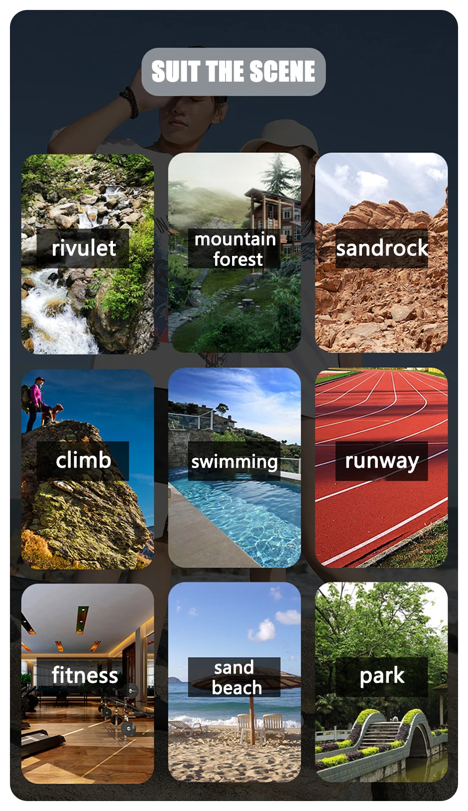 ●Sport Type: Beach,Wading,Fitness,Cycling,Swiming,Outdoor,Climbing,Gym,Hiking,Fishing
