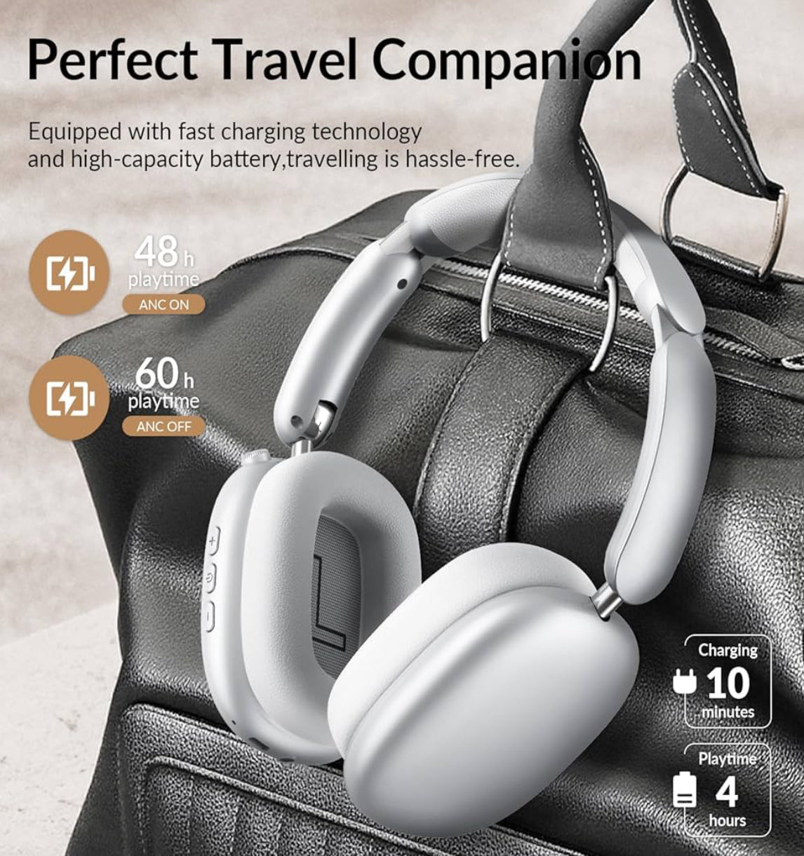 - 【60-Hour Marathon Battery Life】Adopting low power consumption technology and built-in 500mAh high-capacity battery,it can play continuously for up to 48 hours with the ANC function on,and up to 60 hours with the ANC function off. Get 4 hours of playtime in 10 minutes with TYPE-C quick charging.Switch to wired mode with the included 3.5mm audio cable and never run out of power again.
